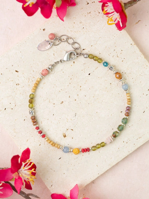 This bracelet/ring combo is a stylish summery look, with epoxy enamel coated beads set in gold plated chain. The beaded loop slips over the finger ...