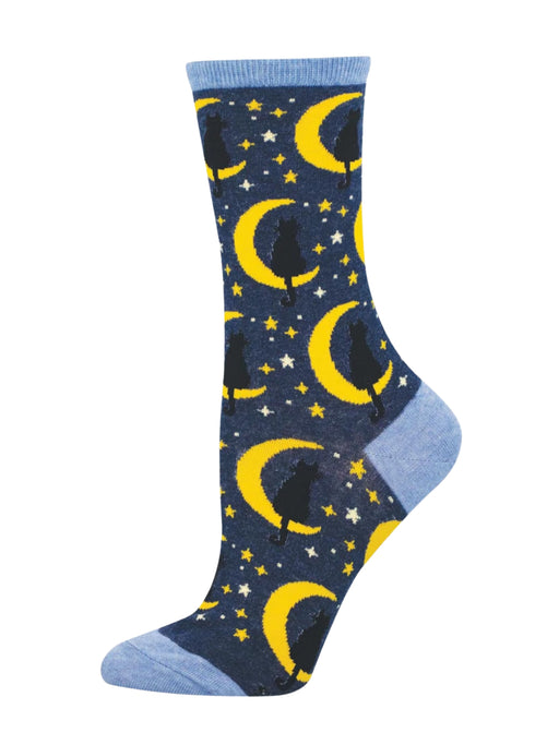 Some designs feel like a little wish. These “Lunar Cat” cotton blend crew socks feature a black cat sitting peacefully on the golden crescent moon,...