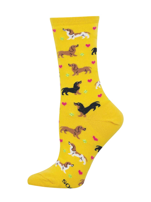 There’s just something about dachshunds. These “Doxie Love” cotton blend crew socks celebrate everyone’s favorite long dogs with cute little wiener...