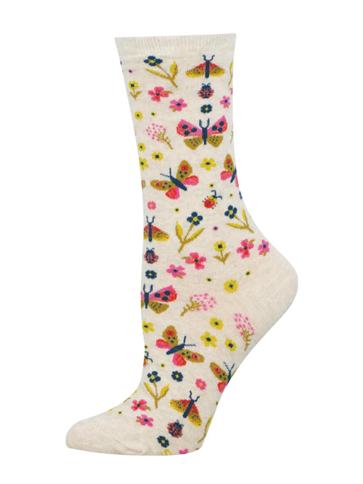 Light, graceful, and quietly beautiful, these cotton blend crew socks feature sweet butterflies and dragonflies fluttering among delicate flowers o...