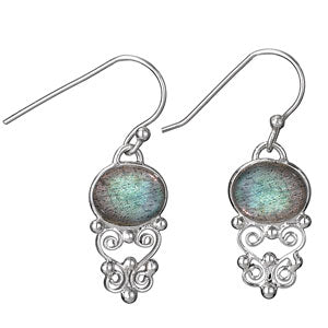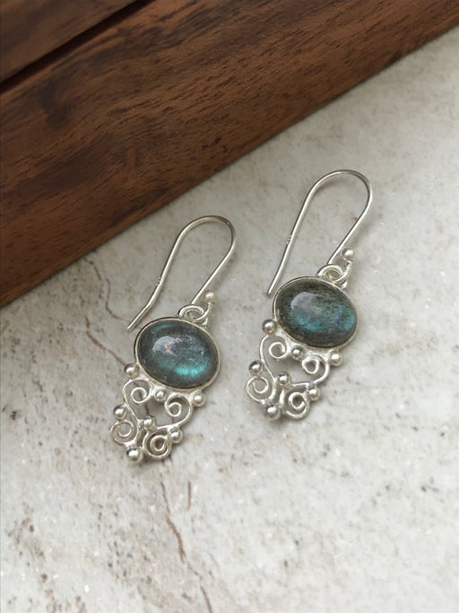 Original price $ 28.00 - Original price $ 28.00Original price$ 28.00$ 28.00 - $ 28.00Current price $ 28.00| /These simple and stunning dangle earrings feature an oval cabochon of blue-green labradorite set in sterling silver with French ear wires. Each gem...