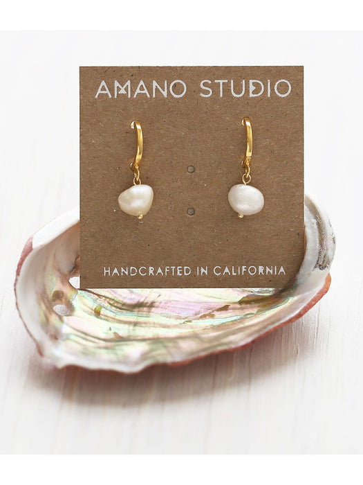 Freshwater Pearl Huggie Hoops by Amano Studio
