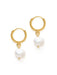 These gold plated huggie hoops feature a dangle of a small white freshwater pearl. Classic and on trend!
