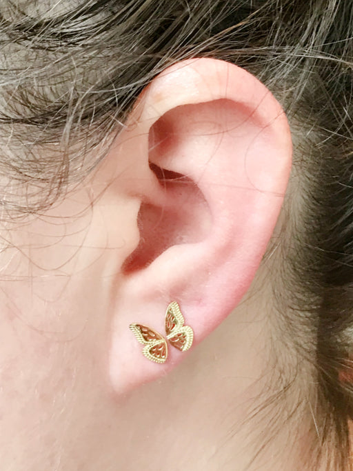 Original price $ 20.00 - Original price $ 20.00Original price$ 20.00$ 20.00 - $ 20.00Current price $ 20.00| /Beautiful enamel butterflies rest on your ears with these lovely stud earrings. The butterfly wings are folded up allowing them to appear more rea...