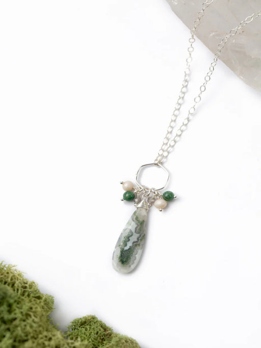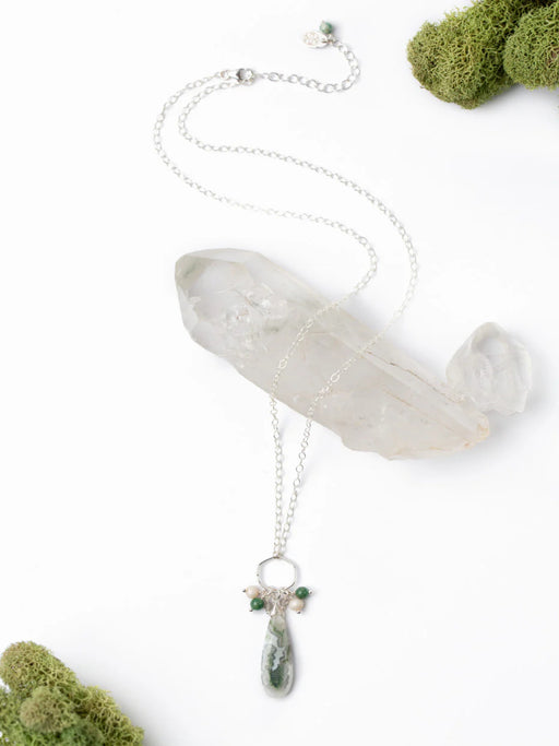 Spring Frost Moss Agate Drop Necklace by Anne Vaughan