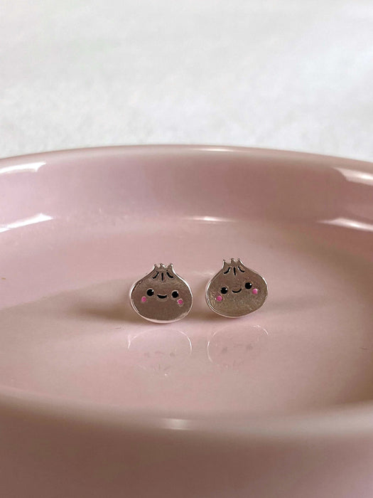 These adorable stud earrings are smiling bao bun dumplings filled with black and pink enamel details. Each piece of boma jewelry is made with recycled sterling silver that is nickel-free, lead-free, hypoallergenic and antimicrobial. These dumplings are hand painted with EU-certified non toxic paints.