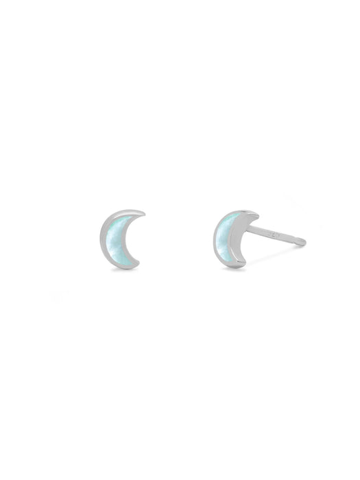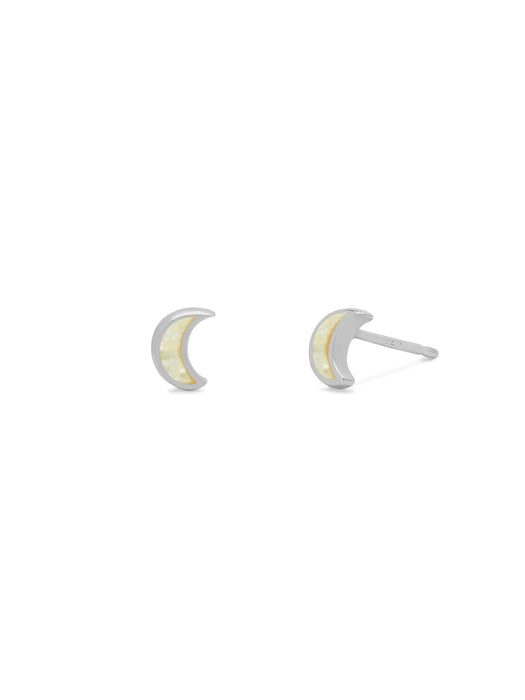 These classic stud earrings are crescent moons inlaid with iridescent mother of pearl.