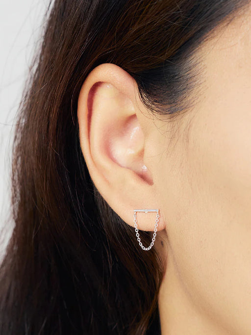 Original price $ 20.00 - Original price $ 20.00Original price$ 20.00$ 20.00 - $ 20.00Current price $ 20.00| /These edgy stud earrings feature a horizontal bar with a loop of silver chain attached to each side. 100% recycled sterling silver. Bar is 3/8" lo...