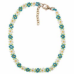 Original price $ 12.95 - Original price $ 12.95Original price$ 12.95$ 12.95 - $ 12.95Current price $ 12.95| /This anklet is a row of beaded daisies with alternating blue and white flowers, with yellow centers & light green leaves. Gold clasp & exte...