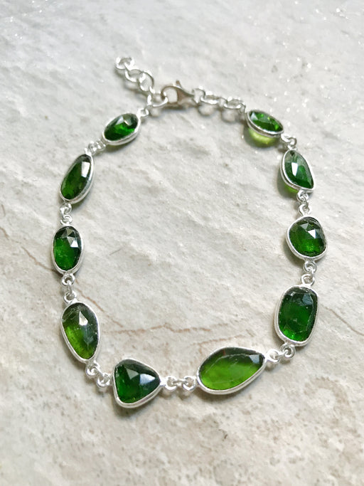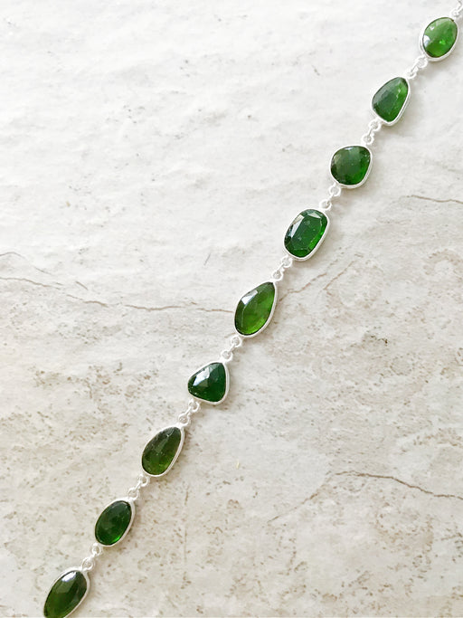 Original price $ 104.00 - Original price $ 104.00Original price$ 104.00$ 104.00 - $ 104.00Current price $ 104.00| /Chrome diopside is a beautiful bottle-green gemstone found in limited quantities. This bracelet features ten faceted diopside stones, each one wond...
