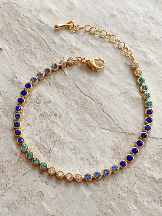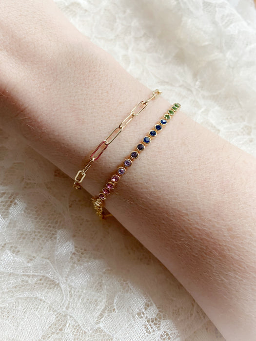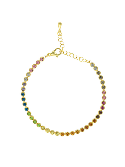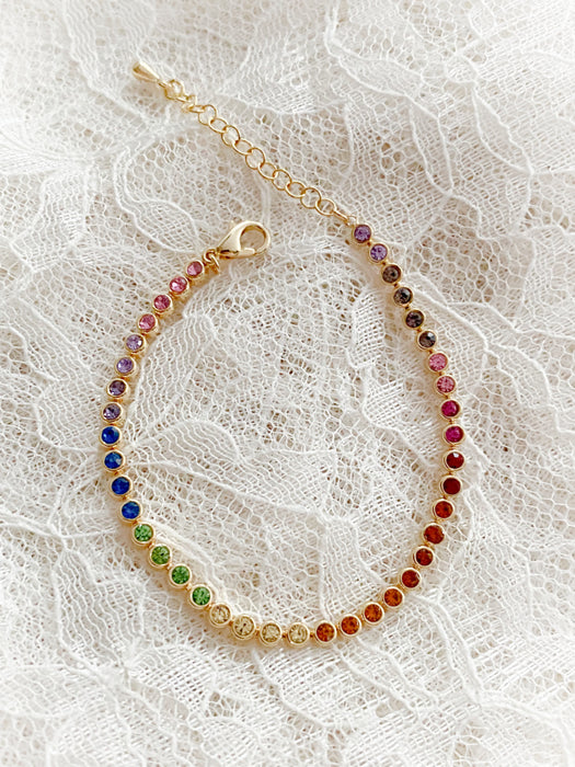These stunning bracelets are a row of glittering bezel-set cubic zirconia crystals.
