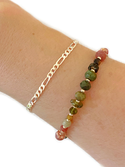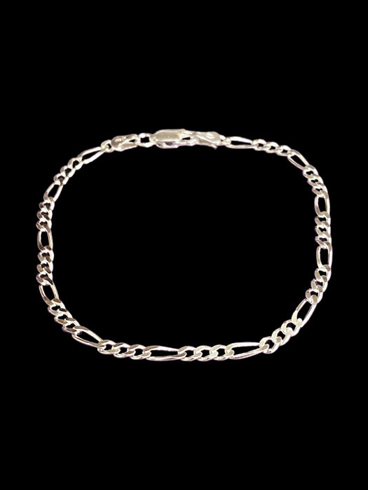 This sterling silver Figaro chain bracelet has strong interlocking links and a lobster clasp.