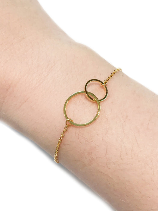 This timeless bracelet has a centerpiece of two linked circles, with chain attached to each side. The extender has a decorative CZ crystal on the end for a special touch.