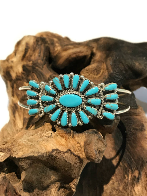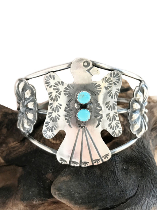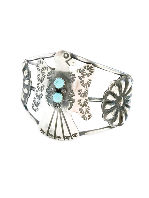 Original price $ 780.00 - Original price $ 780.00Original price$ 780.00$ 780.00 - $ 780.00Current price $ 780.00| /This high-end statement cuff bracelet is handmade in the American Southwest by Navajo artist Delbert Sacatero. This piece is hallmarked by the arti...