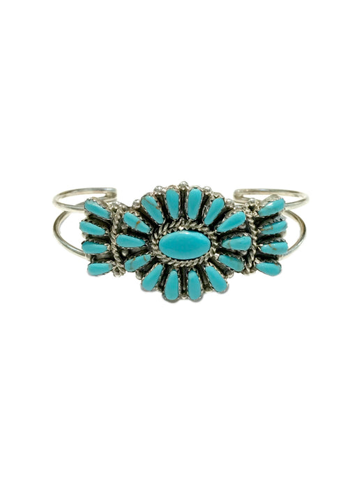 Original price $ 134.00 - Original price $ 134.00Original price$ 134.00$ 134.00 - $ 134.00Current price $ 134.00| /This large cuff bracelet is handmade in the American Southwest by skilled Navajo silversmiths. A large concho centerpiece is bordered with a sweet ...