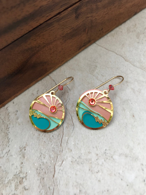 Original price $ 26.00 - Original price $ 26.00Original price$ 26.00$ 26.00 - $ 26.00Current price $ 26.00| /These earrings are stunning scenes of a brilliant sun setting over an aqua sea. They are crafted in two layers, with the background piece enameled ...