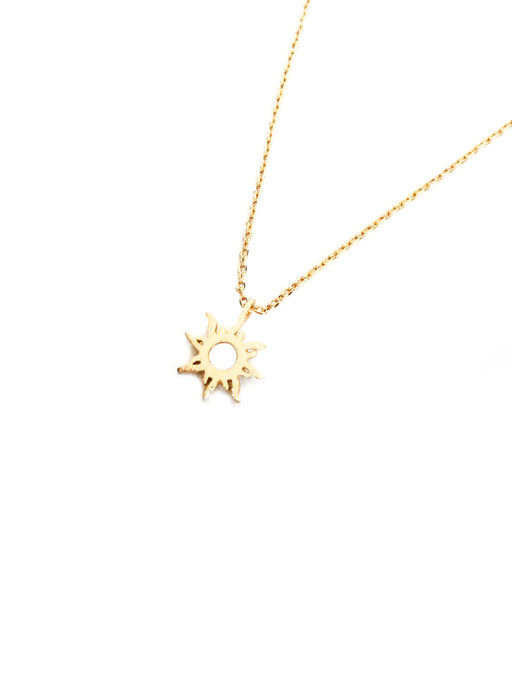 Original price $ 12.95 - Original price $ 12.95Original price$ 12.95$ 12.95 - $ 12.95Current price $ 12.95| /This gold plated fashion necklace has a pendant of a stylized sun with curled flares, and a soft etched finish. Gold plated pendant and chain. Adju...
