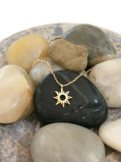 Original price $ 12.00 - Original price $ 12.00Original price$ 12.00$ 12.00 - $ 12.00Current price $ 12.00| /This happy little sun pendant has a brushed finish and comes on an adjustable cable chain. Gold plated pendant and chain. 16-18” long. Pendant is ...