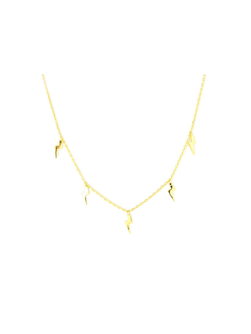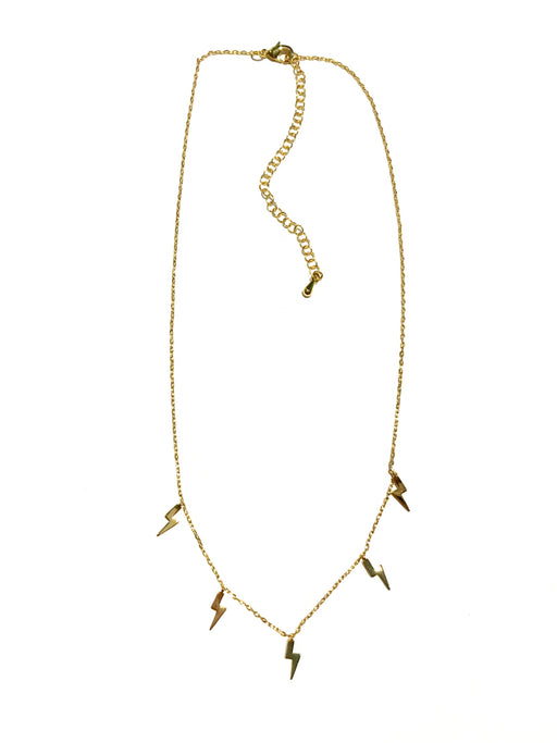 Original price $ 16.00 - Original price $ 16.00Original price$ 16.00$ 16.00 - $ 16.00Current price $ 16.00| /Five small lightning bolt charms are evenly spaced along gold plated chain. Adjustable length 16"-19". Charms are about 1/4" long. Pair with our L...