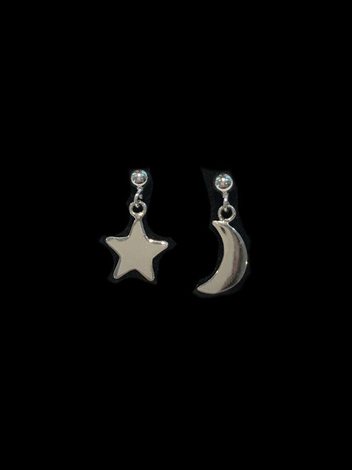 Original price $ 14.00 - Original price $ 14.00Original price$ 14.00$ 14.00 - $ 14.00Current price $ 14.00| /These fun mismatched earrings are a ball stud with a dangle of a crescent moon & star. Sterling silver. Approx. 1/2" long.