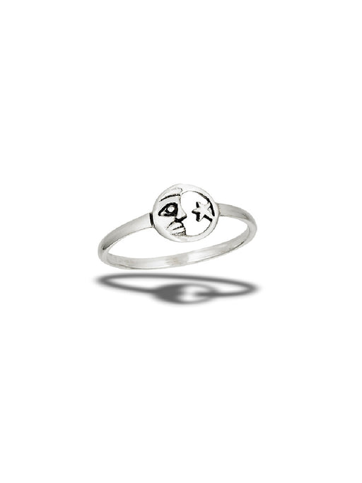 Original price $ 12.00 - Original price $ 12.00Original price$ 12.00$ 12.00 - $ 12.00Current price $ 12.00| /This celestial ring is a crescent moon encircling a star. The moon has oxidized silver detailed face. Sterling Silver. Available in whole sizes 4-...