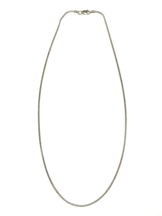 Sterling silver coreana chains have a woven style, are very sturdy and have a rhodium finish to prevent tarnishing. Pair with one of our gorgeous pendants! Lobster clasp.
