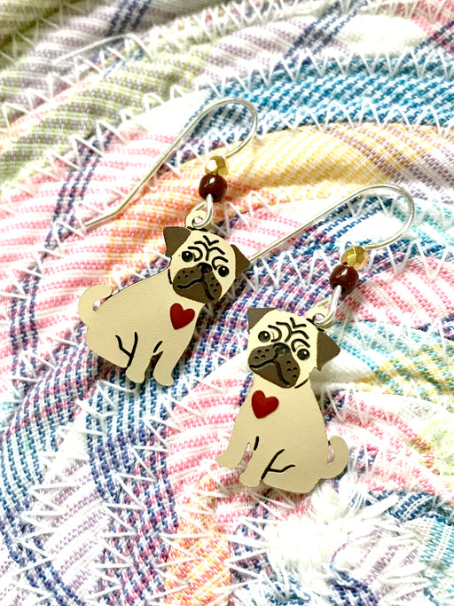 Original price $ 21.00 - Original price $ 21.00Original price$ 21.00$ 21.00 - $ 21.00Current price $ 21.00| /These earrings feature a sweet pug with a heart crafted from lightweight metal and enamel. Gold & brown beads embellish the sterling silver ear...