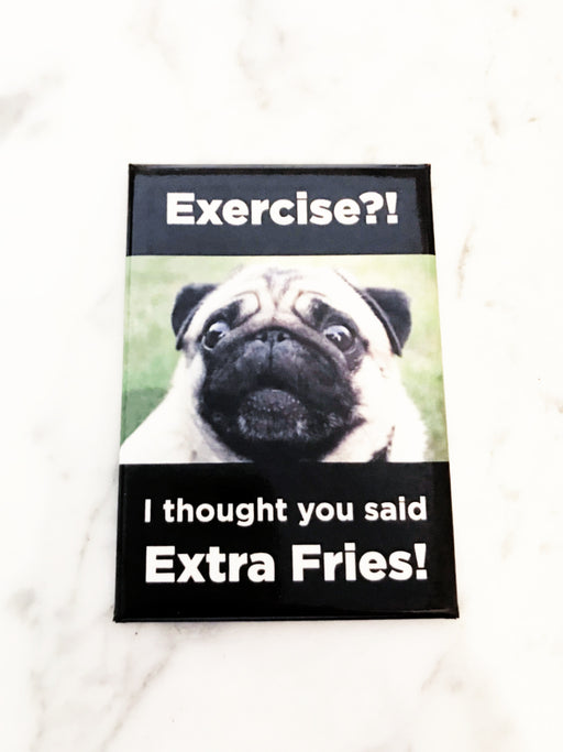 Original price $ 4.95 - Original price $ 4.95Original price$ 4.95$ 4.95 - $ 4.95Current price $ 4.95| /Our best-selling magnets are now available on our website! This magnet reads "Exercise?! I thought you said extra fries!" with an image of a shocke...