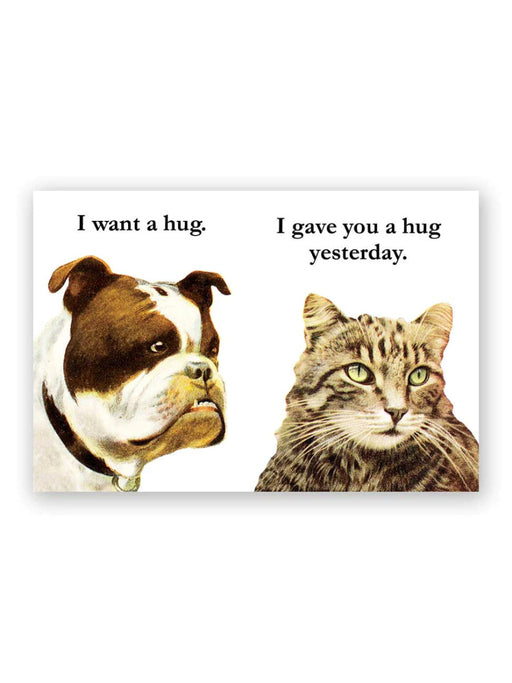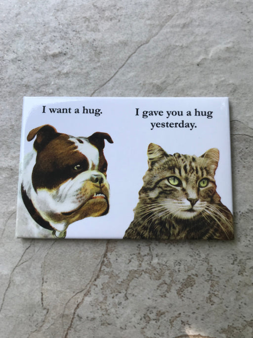 Original price $ 4.95 - Original price $ 4.95Original price$ 4.95$ 4.95 - $ 4.95Current price $ 4.95| /Our best-selling magnets are now available on our website! This magnet features a bulldog and cat. Caption reads: Bulldog: "I want a hug" Cat: "I g...