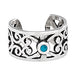 Perfect ear cuff with a centered blue turquoise stone surrounded by silver swirls. Adjustable to fit most ears by gently opening and closing around ear.
