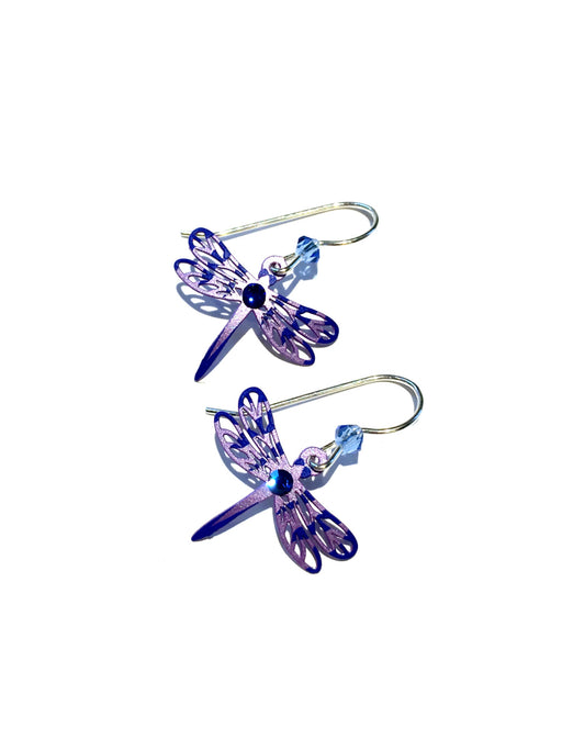 Original price $ 20.00 - Original price $ 20.00Original price$ 20.00$ 20.00 - $ 20.00Current price $ 20.00| /These lightweight earrings feature a dragonfly enameled in metallic purple with dark purple details and set in the center with a sparkling dark blu...