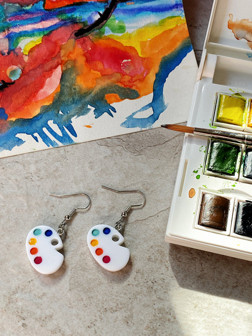 Original price $ 12.00 - Original price $ 12.00Original price$ 12.00$ 12.00 - $ 12.00Current price $ 12.00| /These artful earrings are white painter's palettes filled with a rainbow of "paint", ready for possibility. Silver tone ear wires. Made by Simple N...