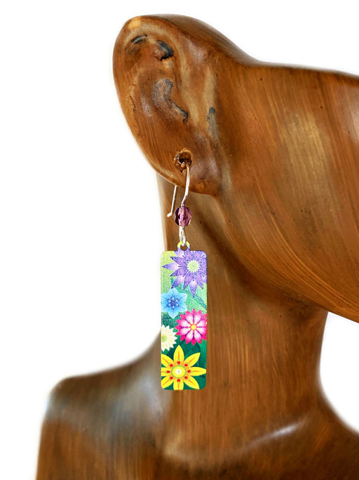 Original price $ 24.00 - Original price $ 24.00Original price$ 24.00$ 24.00 - $ 24.00Current price $ 24.00| /These bold statement earrings feature a long column enameled with a vibrant image of bursting flower blossoms in a variety of colors against a fiel...