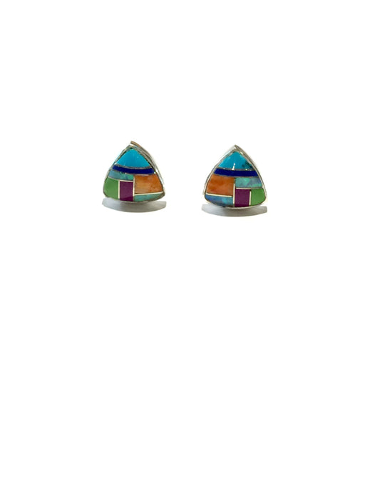 Original price $ 25.00 - Original price $ 25.00Original price$ 25.00$ 25.00 - $ 25.00Current price $ 25.00| /These colorful stud earrings feature a triangle shape inlaid with bars of genuine stones including turquoise, gaspeite, opal, spiny oyster shell an...