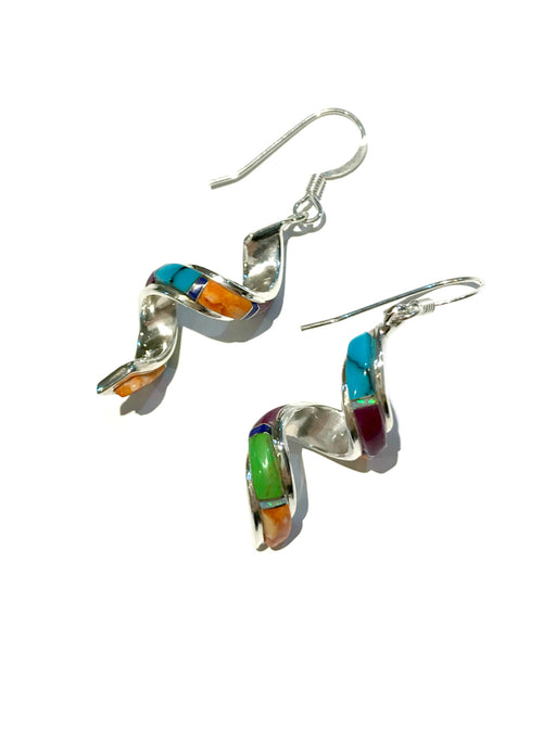 Original price $ 72.00 - Original price $ 72.00Original price$ 72.00$ 72.00 - $ 72.00Current price $ 72.00| /These stunning earrings feature thick curls of sterling silver inlaid with a variety of brightly colored gemstones including turquoise, gaspeite, l...