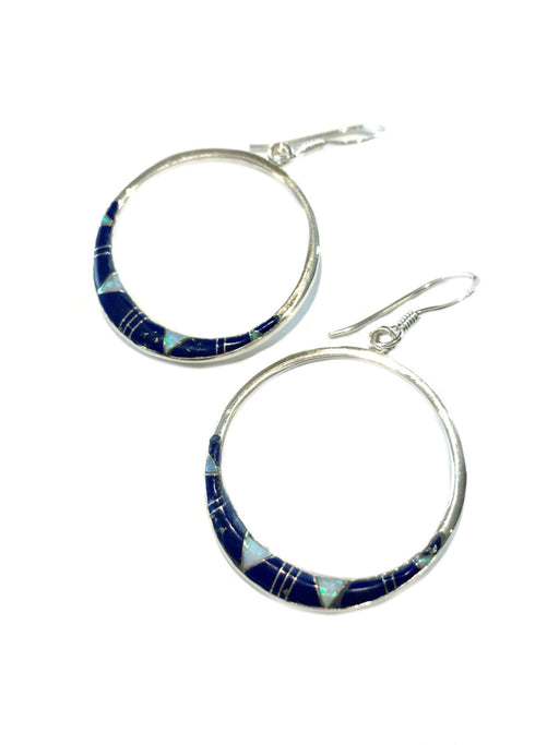Original price $ 58.00 - Original price $ 58.00Original price$ 58.00$ 58.00 - $ 58.00Current price $ 58.00| /These finely crafted dangle earrings feature an open hoop with an inlaid gemstone edge along the bottom, featuring sparkling triangles of blue opal...