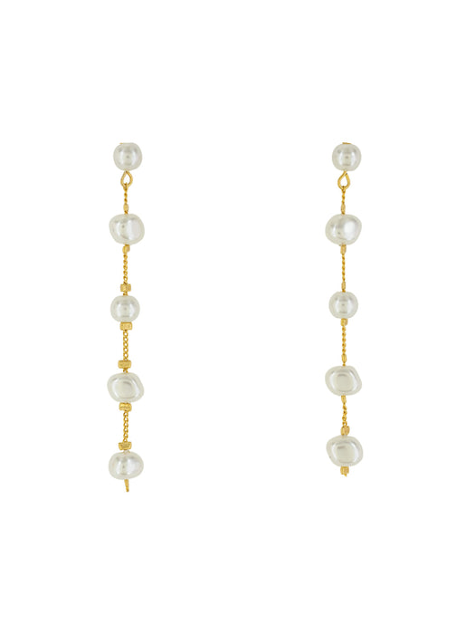 These elegant statement earrings are pearl posts with a segmented drop alternating pearls and chain.