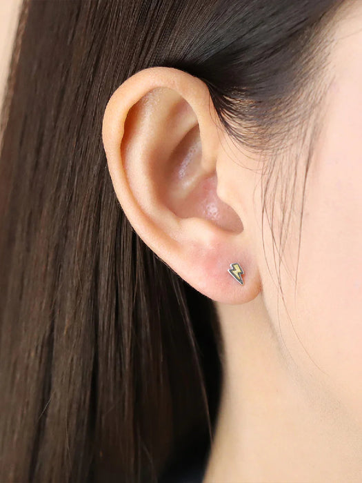 These celestial stud earrings are lightning bolts inlaid with stone.