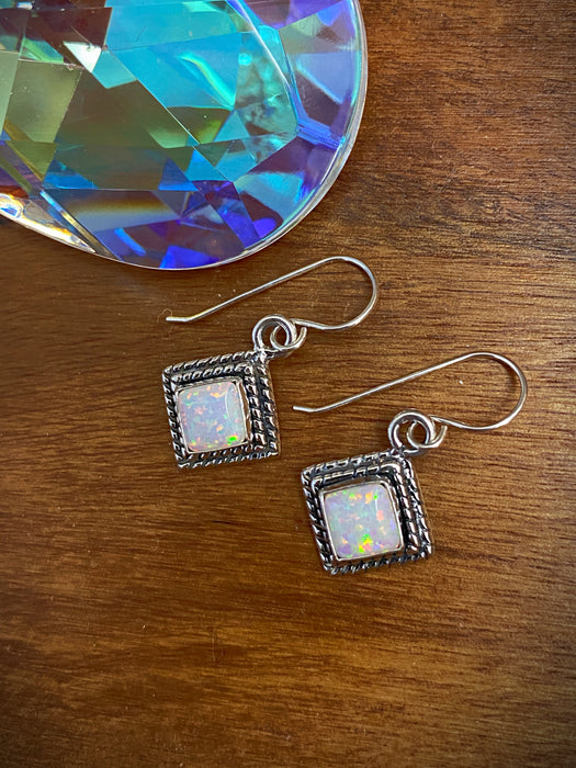 Twist Border White Opal Square Dangles