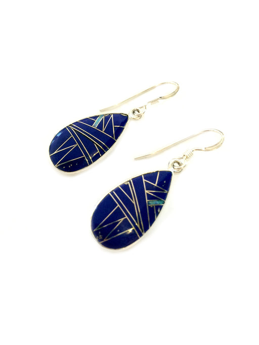 Original price $ 52.00 - Original price $ 52.00Original price$ 52.00$ 52.00 - $ 52.00Current price $ 52.00| /These striking earrings feature navy blue lapis shaped & inlaid in a fascinating geometric design and set in a teardrop. A single pane of opal ...