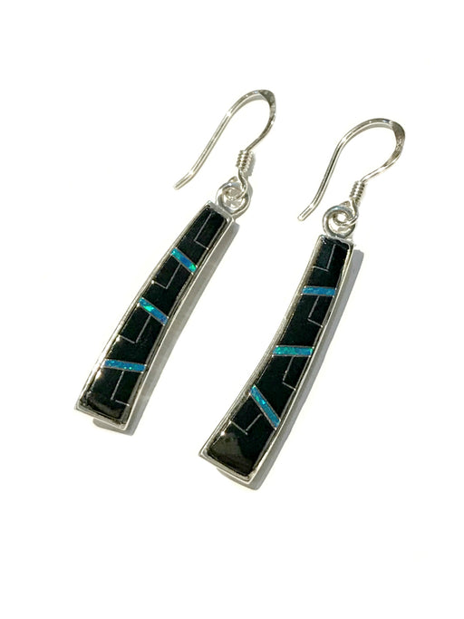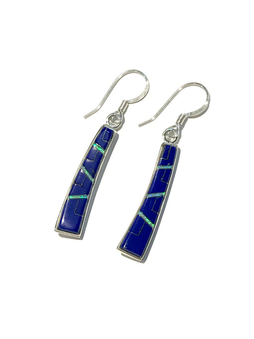 Original price $ 48.00 - Original price $ 48.00Original price$ 48.00$ 48.00 - $ 48.00Current price $ 48.00| /These earrings feature long gently curving bars inlaid with a striking geometric gemstone combination of blue lapis and light blue opal. Sterling...