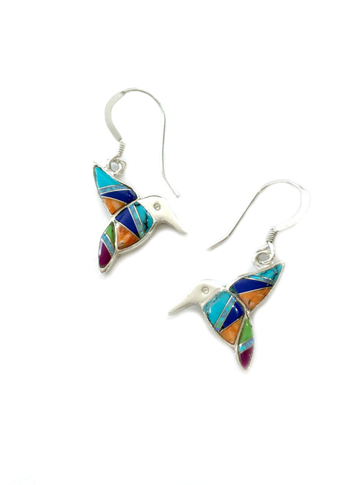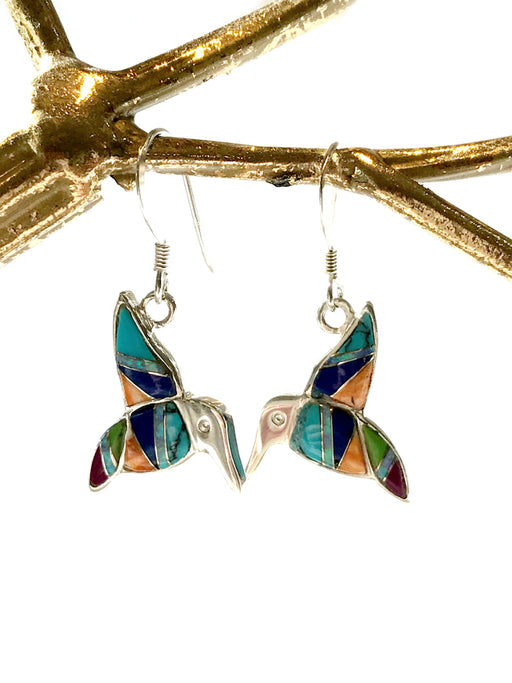 Original price $ 38.00 - Original price $ 38.00Original price$ 38.00$ 38.00 - $ 38.00Current price $ 38.00| /These colorful and unique earrings are a silver hummingbird in flight, inlaid with gemstones in geometric shapes, including turquoise, lapis, opal,...