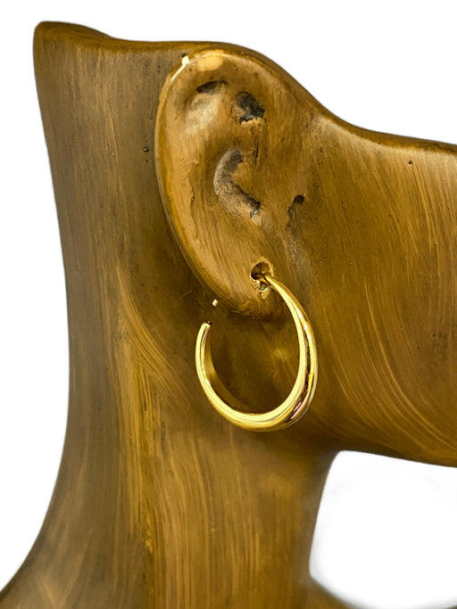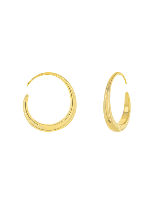 These modern earrings is a continuous hoop, curved into a sleek hoop. Simply pull through and go! Gold plated. 7/8" (2cm) diameter.