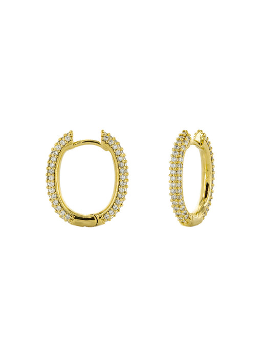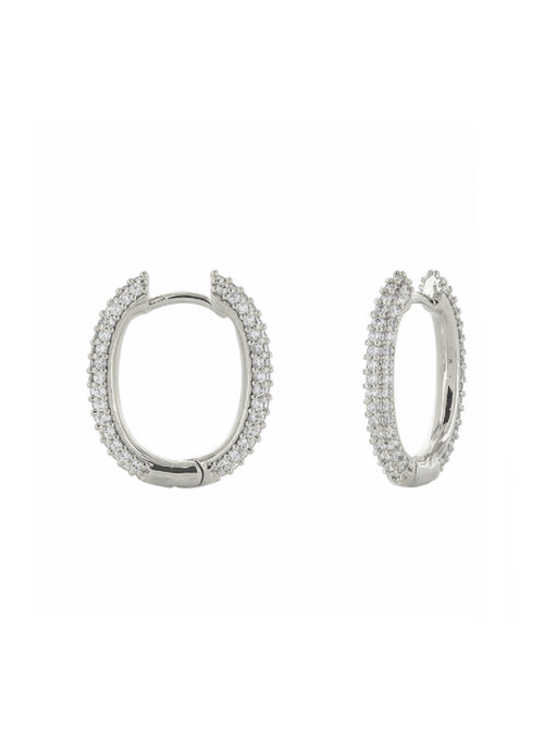 Pave CZ Oval Huggie Hoops | Gold Silver Plated Earrings | Light Years