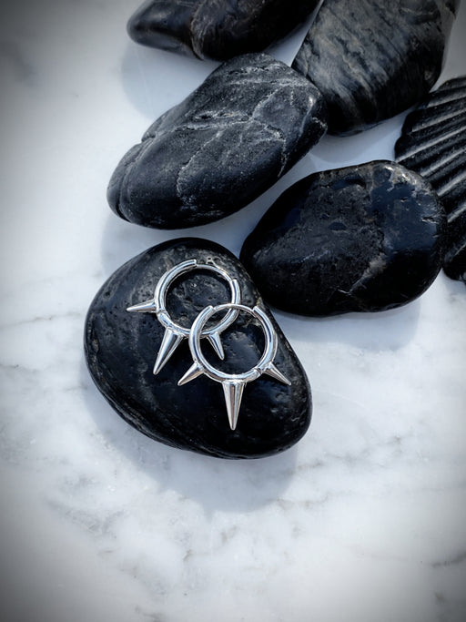 • Spiked Huggie Hoops | White Gold Plated Earrings | Light Years Jewelry