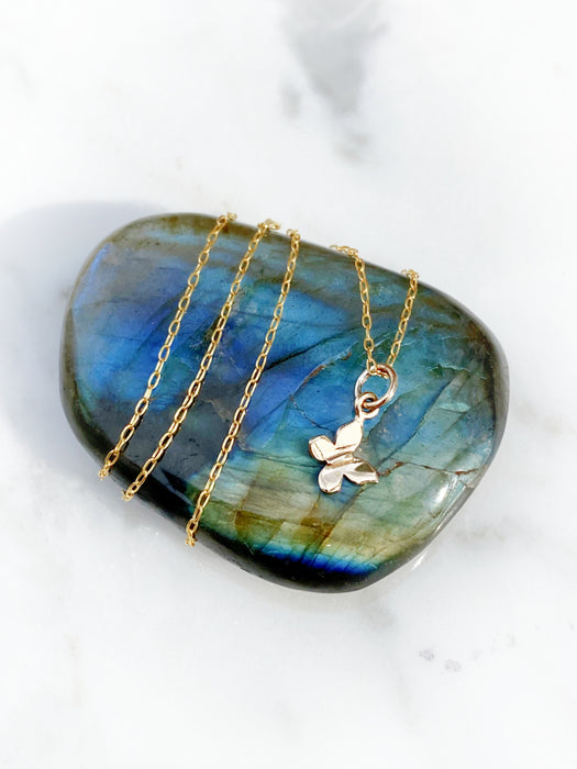 This necklace has a pendant of a small folded butterfly ready to take flight, the perfect minimal accent!