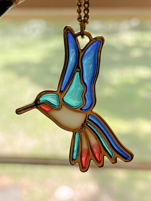 Original price $ 14.00 - Original price $ 14.00Original price$ 14.00$ 14.00 - $ 14.00Current price $ 14.00| /This fashion necklace feature a pendant of a hummingbird made with vibrant translucent acrylic enamel in shades of blue, pink and white, giving a s...