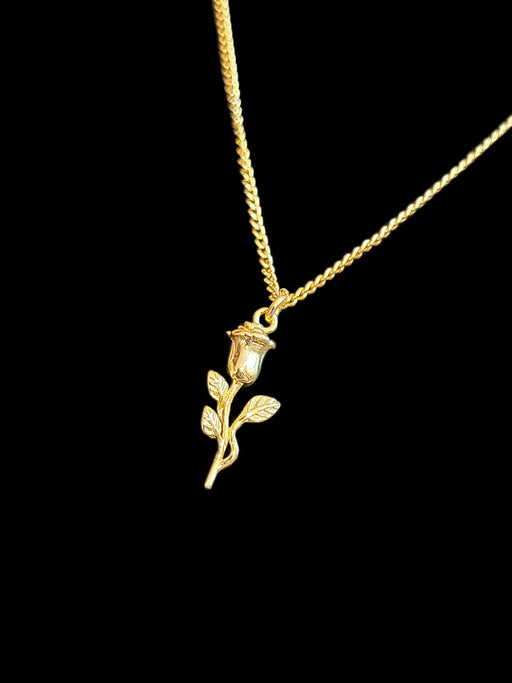 Original price $ 12.95 - Original price $ 12.95Original price$ 12.95$ 12.95 - $ 12.95Current price $ 12.95| /This sweet necklace is a detailed rose stem with rosebud and leaves. Gold plated. Adjustable length 15-17".