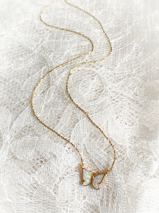 Original price $ 36.00 - Original price $ 36.00Original price$ 36.00$ 36.00 - $ 36.00Current price $ 36.00| /This absolutely stunning necklace features a centerpiece of a butterfly outline expertly inlaid with sparkling white lab-created opal. Gold plated...