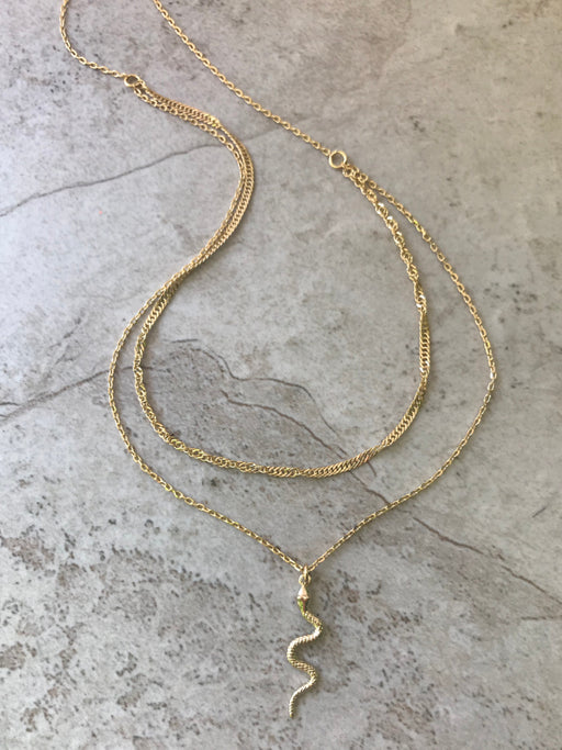Original price $ 18.00 - Original price $ 18.00Original price$ 18.00$ 18.00 - $ 18.00Current price $ 18.00| /This trendy necklace has two dainty layers: the top one is a simple twisted gold serpentine chain, and the bottom is a twisted rope chain with segm...